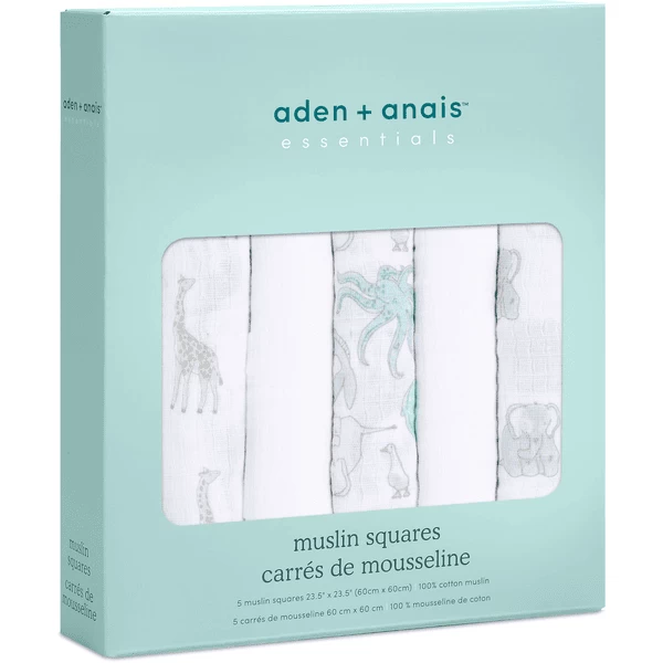 De boerendoekjes natural geschiedenis van aden by aden + anais zijn precies het juiste formaat voor onderweg (60 x 60 cm). Deze onmisbare allrounders zijn gemaakt van 100% katoenen mousseline, waardoor ze zacht, absorberend en ademend zijn – perfect als reserve slabbetje, boerendoekje, veiligheidsdekentje en nog veel meer. Dankzij de verpakking van 5 heb je altijd een van deze essentiële doekjes bij de hand. Stop ze in je luiertas of handtas, of laat er een paar achter in je auto of kinderkamer – overal waar je in de loop van de dag met je baby naartoe gaat.