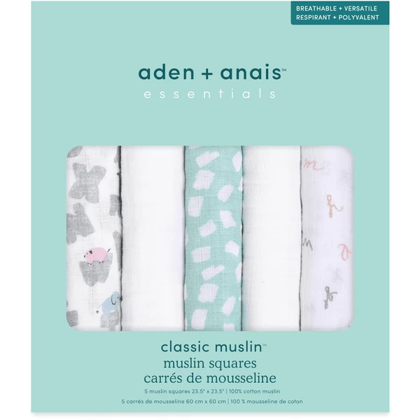 aden + anais™ essential s katoenen mousseline doekjes 5-pack alpha bet animals 60 x 60 cm