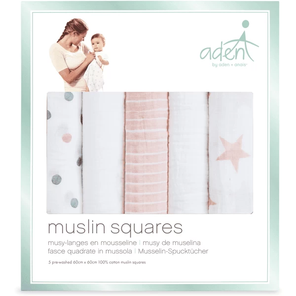 De boerendoekjes van aden by aden + anais zijn de juiste maat voor onderweg (60 x 60 cm). Deze onmisbare allrounders zijn gemaakt van 100% katoenen mousseline, waardoor ze zacht, absorberend en ademend zijn – perfect als reserve slabbetje, boerendoekje, veiligheidsdekentje en nog veel meer. Dankzij de verpakking van 5 heb je altijd een van deze essentiële doekjes bij de hand. Stop ze in je luiertas of handtas, of laat er een paar achter in je auto of kinderkamer – waar je overdag ook naartoe gaat met je baby.