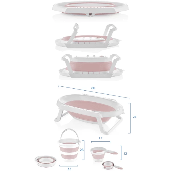 - 3-delige complete set met badje, bademmer en opscheplepel, allemaal kantelbaar