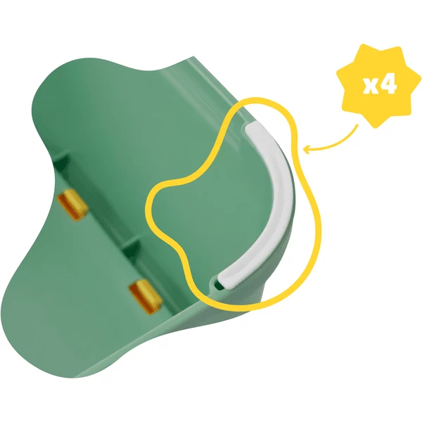 Dankzij 2 royale antislipvlakken aan de bovenzijde en 4 antislipvlakken aan de onderzijde zorgt de opstapkruk voor stabiliteit en grip in elke situatie.