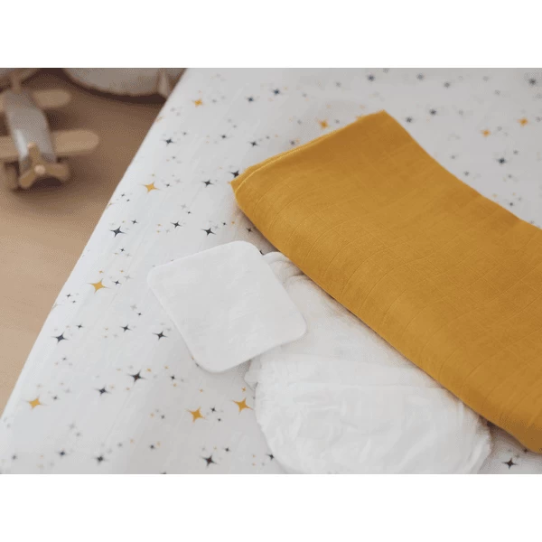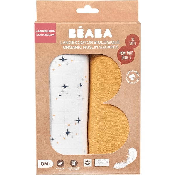 BEABA ® Set van 2 Burp Cloths Honey Yellow / Starry Night 120 x 120 cm