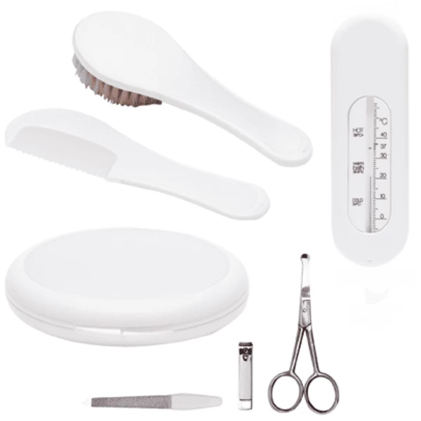 De bébé-jou cadeauset bevat een kam en borstel, een manicureset en een badthermometer. Zo heb je snel alles wat je nodig hebt om voor je baby te zorgen.