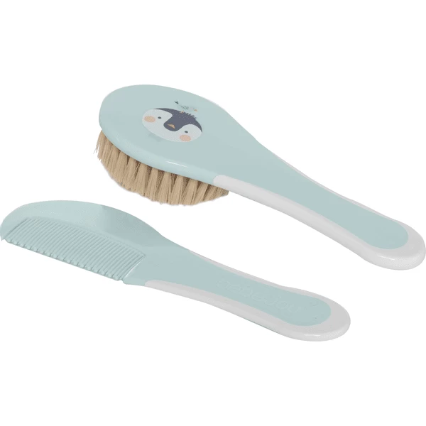 De bébé-jou® babyborstel en kam set is speciaal ontworpen voor de gevoelige hoofdhuid van baby’s en Babys peuters. De borstelharen zijn zacht en de kam heeft afgeronde punten zodat ze niet schadelijk zijn voor een pasgeborene. Beide hebben een comfortabele handgreep voor een eenvoudige en veilige bediening.