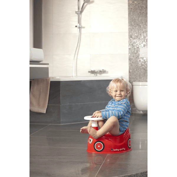 Vanaf nu is het naar de wc gaan erg gemakkelijk. Het BIG-BOBBY-CAR design maakt het zo dat naar de wc gaan op deze toilettrainer ontzettend veel plezier geeft. Deze knalrode uitvoering in auto vorm met stuur trekt kinder vrijwel automatisch aan, zelfs de langer durende boodschappen zijn dankzij het comfortabele zitje met verhoogde rugleuning geen probleem. Wanneer je kind zijn boodschap gedaan heeft, kan hij eenvoudigweg door op het stuur op de toeter te drukken pappa of mamma seinen.