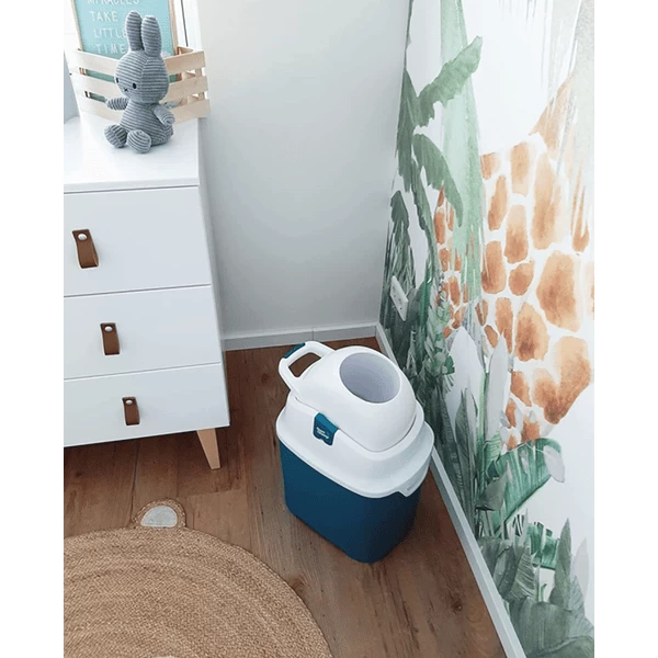 - Eenvoudige bediening: stop de luier van bovenaf in de opening. Door eenvoudig het bovenste deel te draaien, valt de luier in de afvalzak.