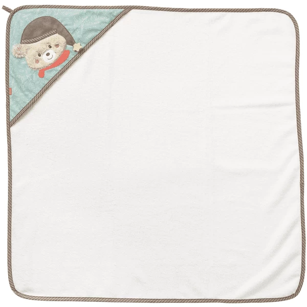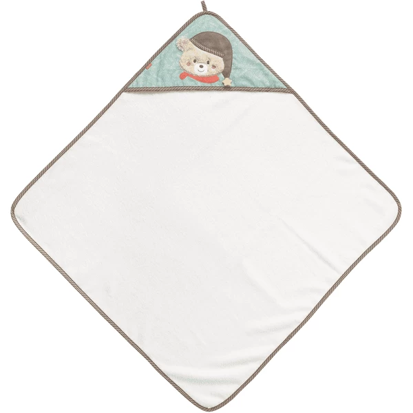 De absorberende babydoek met capuchon en de schattige Bruno berenapplicatie uit de Bruno-collectie wikkelt de baby voorzichtig in en beschermt hem tegen kou en tocht. De pluizige badhanddoek in zacht beige zorgt voor aangenaam knuffelplezier: