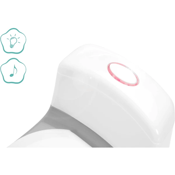 Terwijl uw kind na afloop van zijn succes geniet, kunt u de binnenpot gemakkelijk verwijderen om schoon te maken. Tot de vele geweldige functies behoren het spoelgeluid met licht, de geïntegreerde spatbescherming en een vak voor vochtige doekjes aan de achterkant. De antislip rubberen voet zorgt ervoor dat het minitoilet niet wegglijdt en stabiel staat.