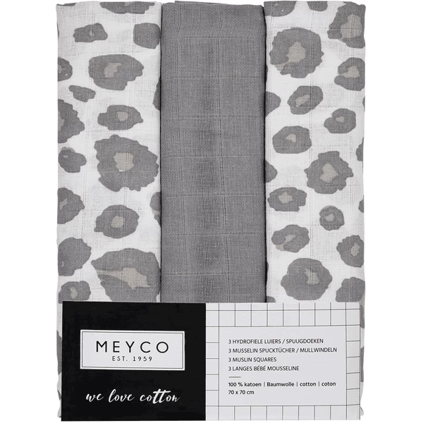 Meyco Gaasluiers 3-Pack Panter Neutraal/Grijs 70 x 70 cm