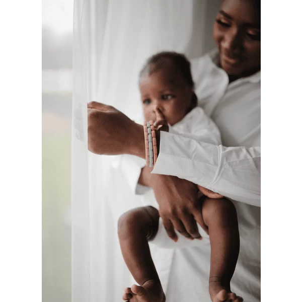 - De bijtarmband kan zowel door de moeder als de baby worden gebruikt.