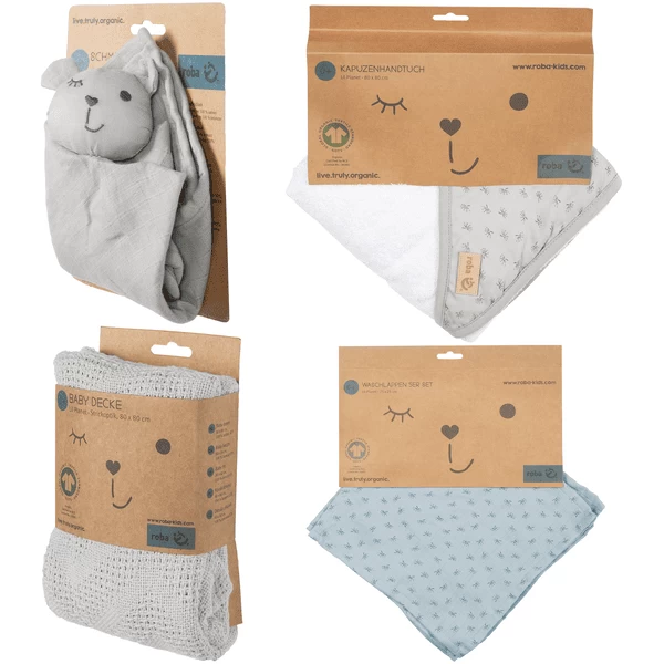 De biologische geschenkset ‘Lil Planet ‘ van roba zorgt voor een aangename wasbeurt en een knuffelig en droog gevoel na het babybadje met zijn huidvriendelijke, vuilvrije, waterabsorberende en extra zachte katoenen badstof en jersey van biologisch katoen. De cadeauset bestaat uit een mousseline en badstof handdoek met capuchon, drie mousseline washandjes, een knuffeldoekje met schattig konijnengezichtje en een gebreid babydekentje van biokatoenen stof. Voor de productie van de biologische babyproducten worden de zuiverste, duurzame en onbehandelde materialen gebruikt. Zelfs na vele wasbeurten behouden de Bio-Baby producten hun vorm en superzachte gevoel. Dankzij de speciale oppervlaktebehandeling en het voorwassen blijven de producten superzacht. De roba Organic textielserie ‘Lil Planet ‘ is verkrijgbaar in de trendy kleuren roze/mauve, lichtblauw/sky en zilvergrijs. De textielserie is duurzaam geproduceerd volgens de Global Organic Textile Standard GOTS en onder eerlijke en sociale voorwaarden van het Business Social Compliance Initiative (BSCI). De serie is gecertificeerd volgens de strengste ecologische criteria met OEKO TEX® Standard 100.