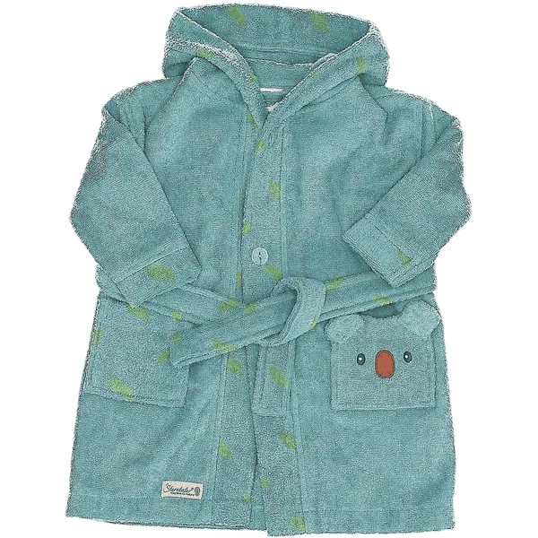 - Badjas met capuchon, gemaakt van zachte badstof (biologisch).