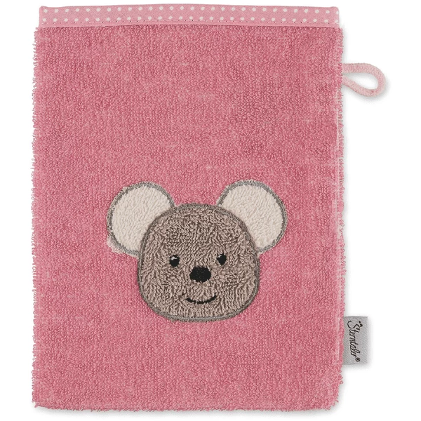 De badstofwashandschoen met geappliqueerd borduurmotief Mouse Mabel staat garant voor plezier tijdens het wassen.