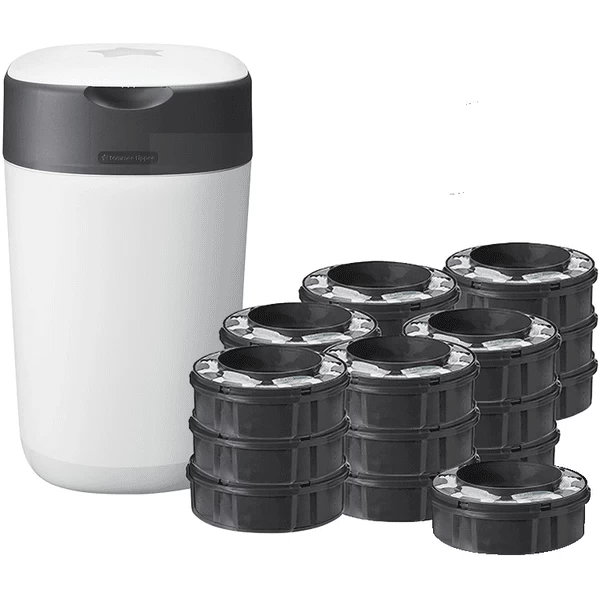 - Het Twist & Click luierverwijderingssysteem is alleen compatibel met de bijbehorende navulcassettes van Tommee Tippee . Sangenic TEC & Simple e Sangenic navulcassettes zijn niet geschikt voor deze luieremmer.