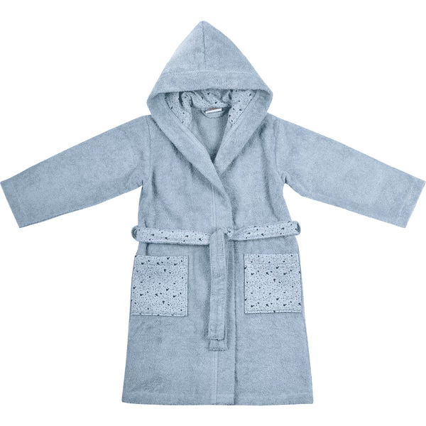Knuffelzachte badjas van pluizige badstof met 2-laagse kap, riem en 2 opgezette zakken. De badjas is bedrukt met kleine walvismotieven.