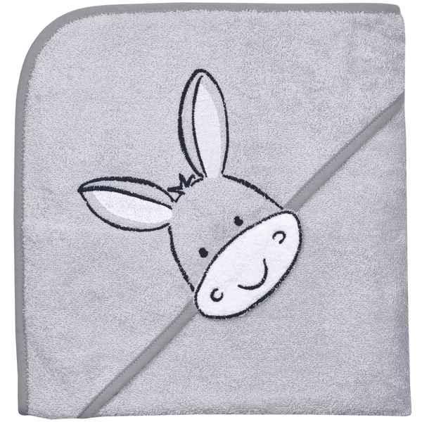 Schattige badhanddoek met kap, gemaakt van pluizige badstof met een schattig ezelsborduurwerk.